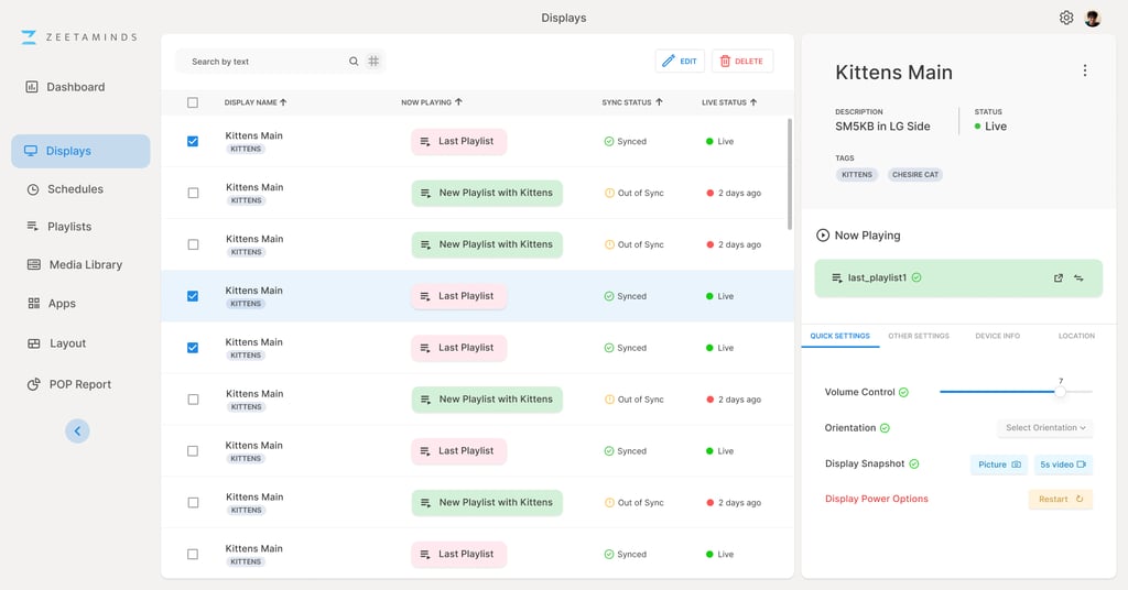 Restart : The first thing most people do when an electronic device (mobile, laptop, Xbox) freezes is ‘Restart.’ The same applies to digital signages as well. Even though freeze is a rare issue, having an option to reboot devices remotely will come in handy in some circumstances.