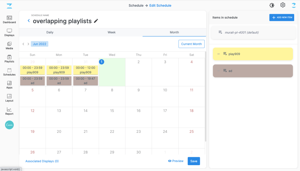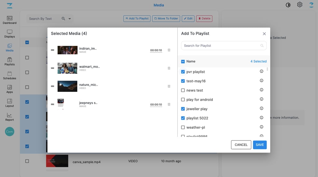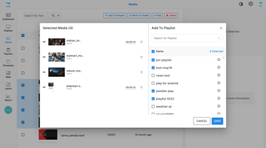 5. Multiple media to multiple playlist association: This workflow of adding one or more media to one or more playlists saves a lot of time and effort when managing bigger display networks. What could probably be a 100 click activity can be done in just a few clicks with this flow. This feature was added based on customer feedback and they were elated upon implementation.